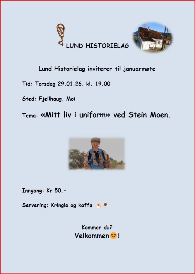 Lund Historielag har fått laget noen flotte handlenett med dialektord. Disse selges av historielaget. Prisen er kr 150,- pr nett. Disse kan bestilles/kjøpes hos våre styremedlemmer. F. eks. Bodil Heskestad mob 90771444, Berit Eike mob 91804942, Jorun Haukland mob 97169861, Asbjørn Øverland mob 92627229. Lund Husflidlag selger også disse for oss i sin butikk i […]